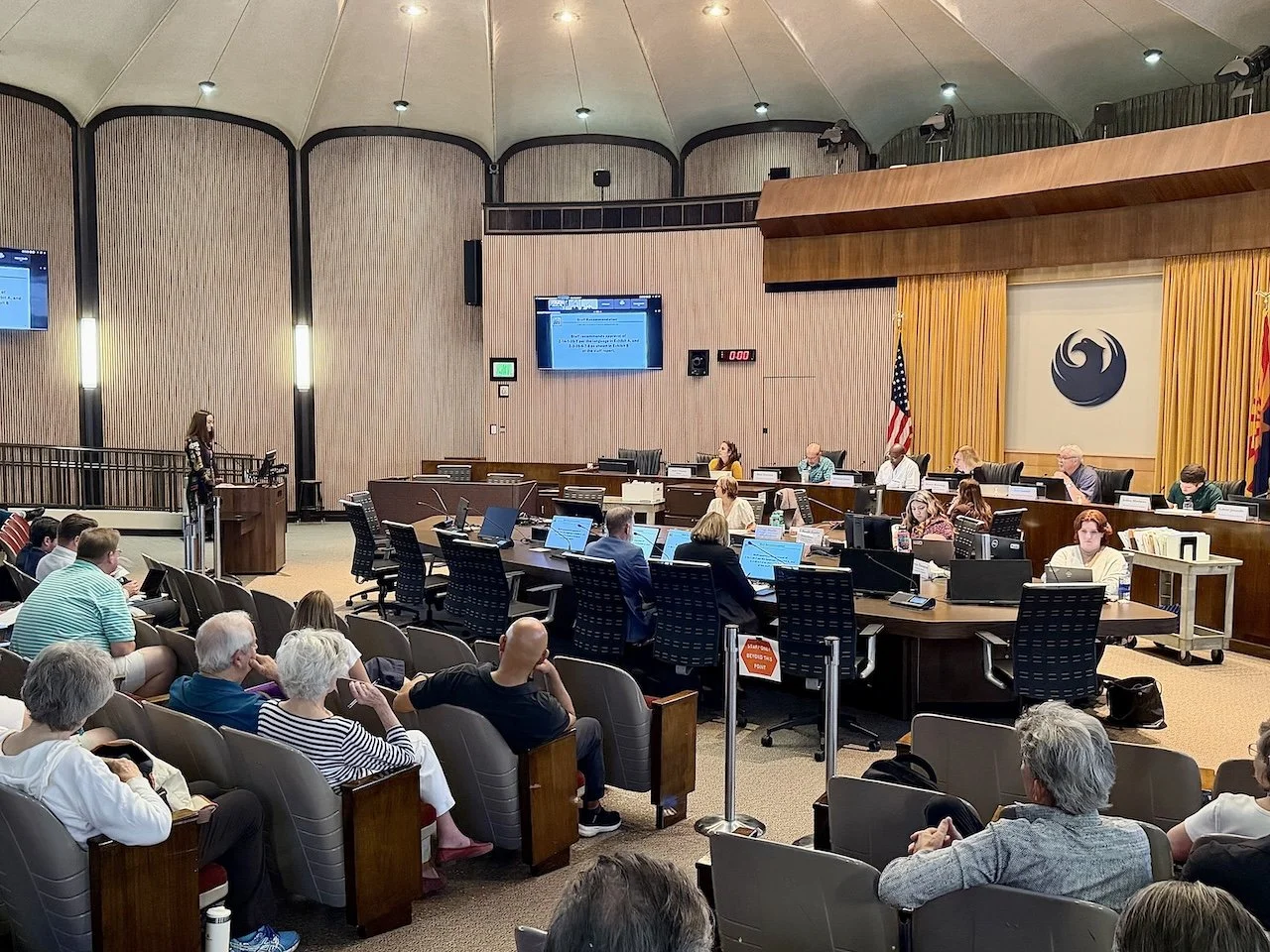 Speaking before the Phoenix Planning Commission on October 6, 2025. Photo by Steve Dreiseszun.